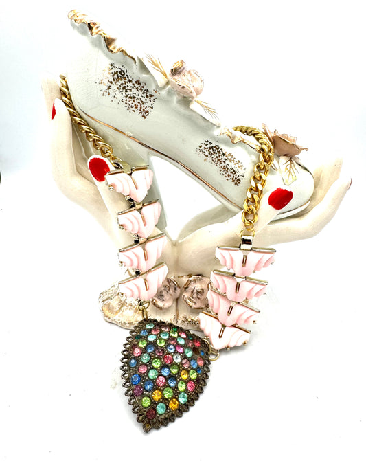 Sourcing components from collectors near and far— spanning the eclectic vintage shops of Palm Springs to the charming flea markets of Paris—Tracey meticulously curates each element with a discerning eye. She reworks these treasured finds, infusing them with new life and meaning, creating one-of-a-kind pieces that blend nostalgia with modern sophistication.