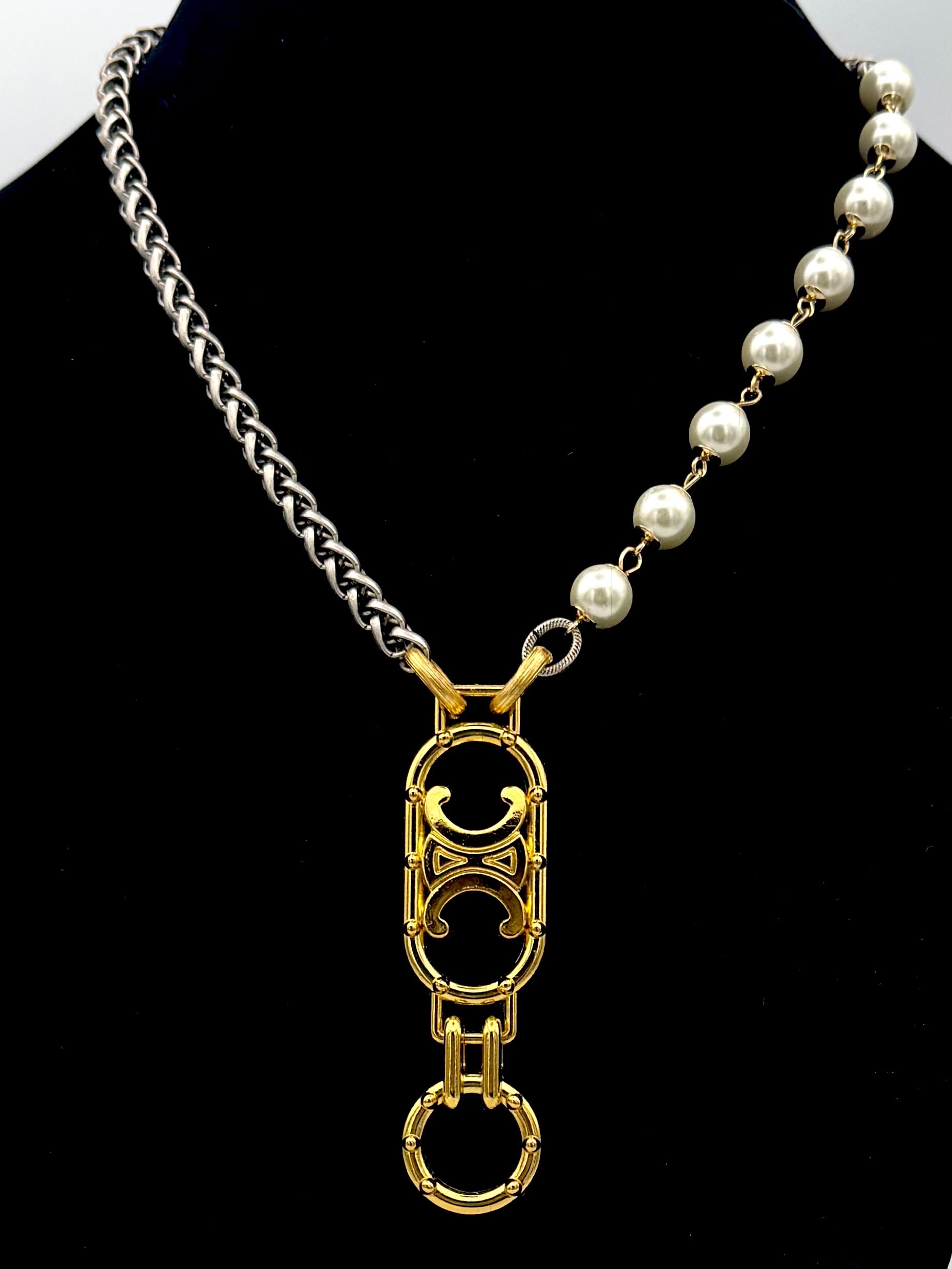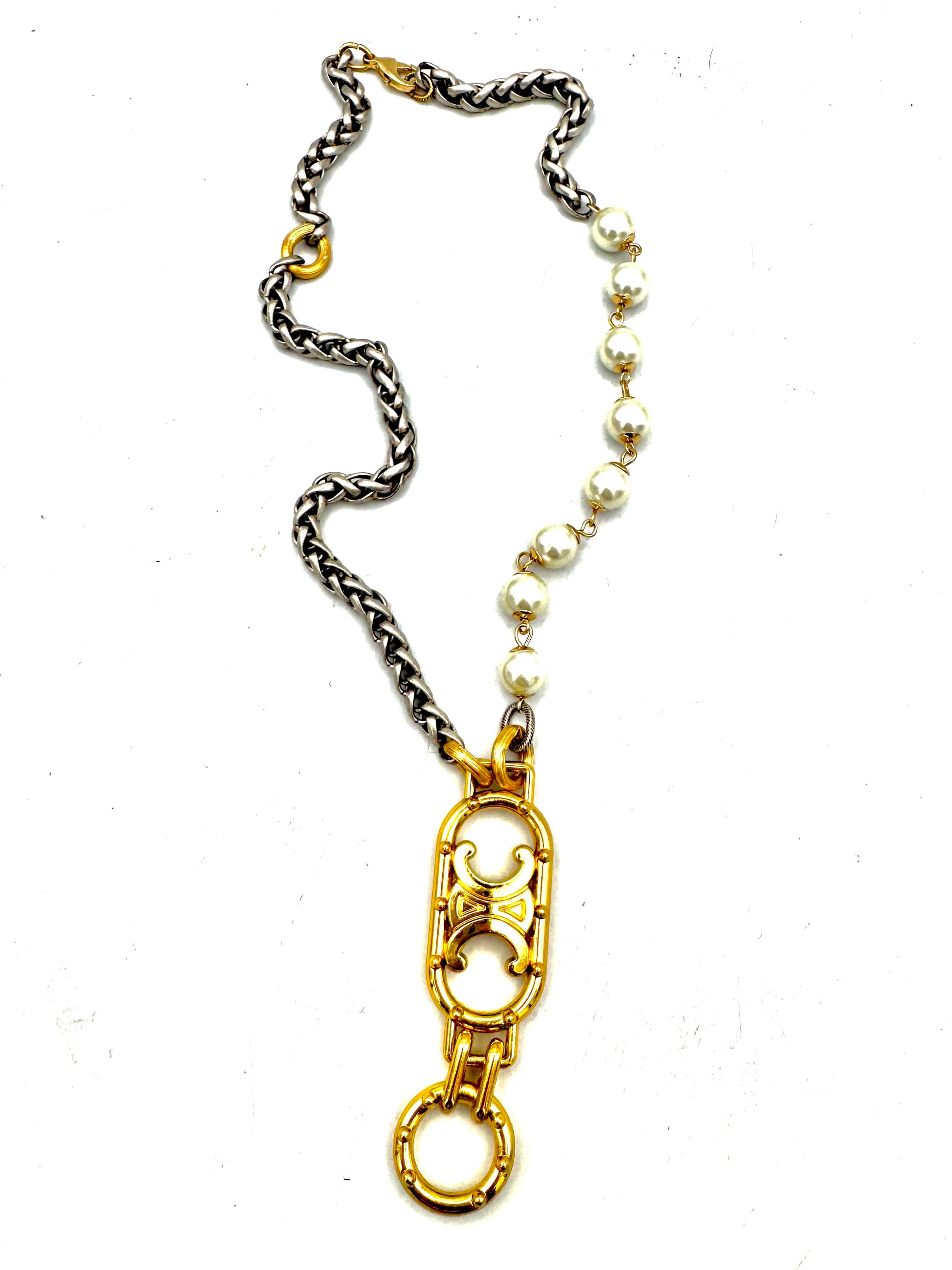 A mix of vintage faux pearl and antique silver plated wheat chain.
