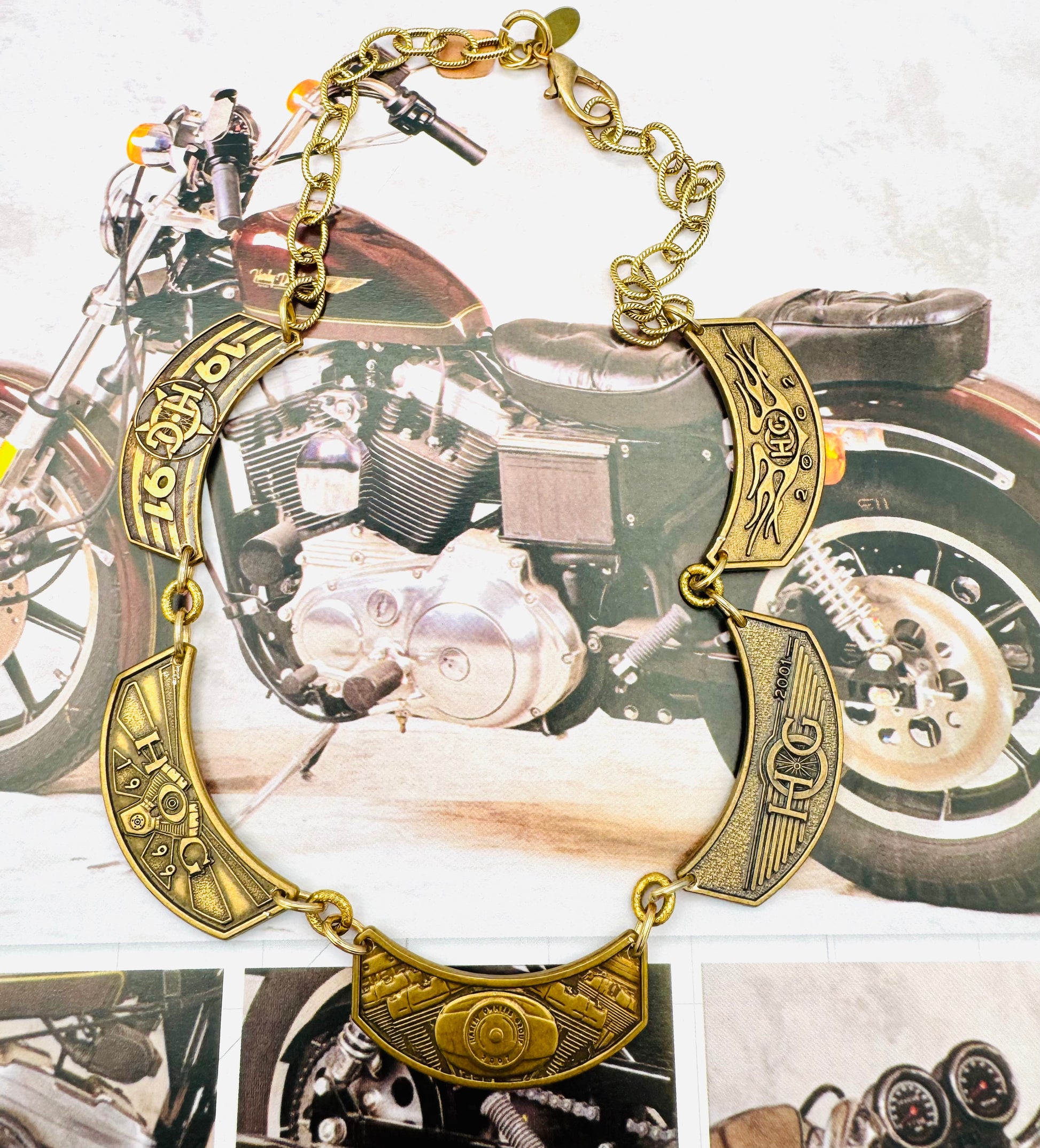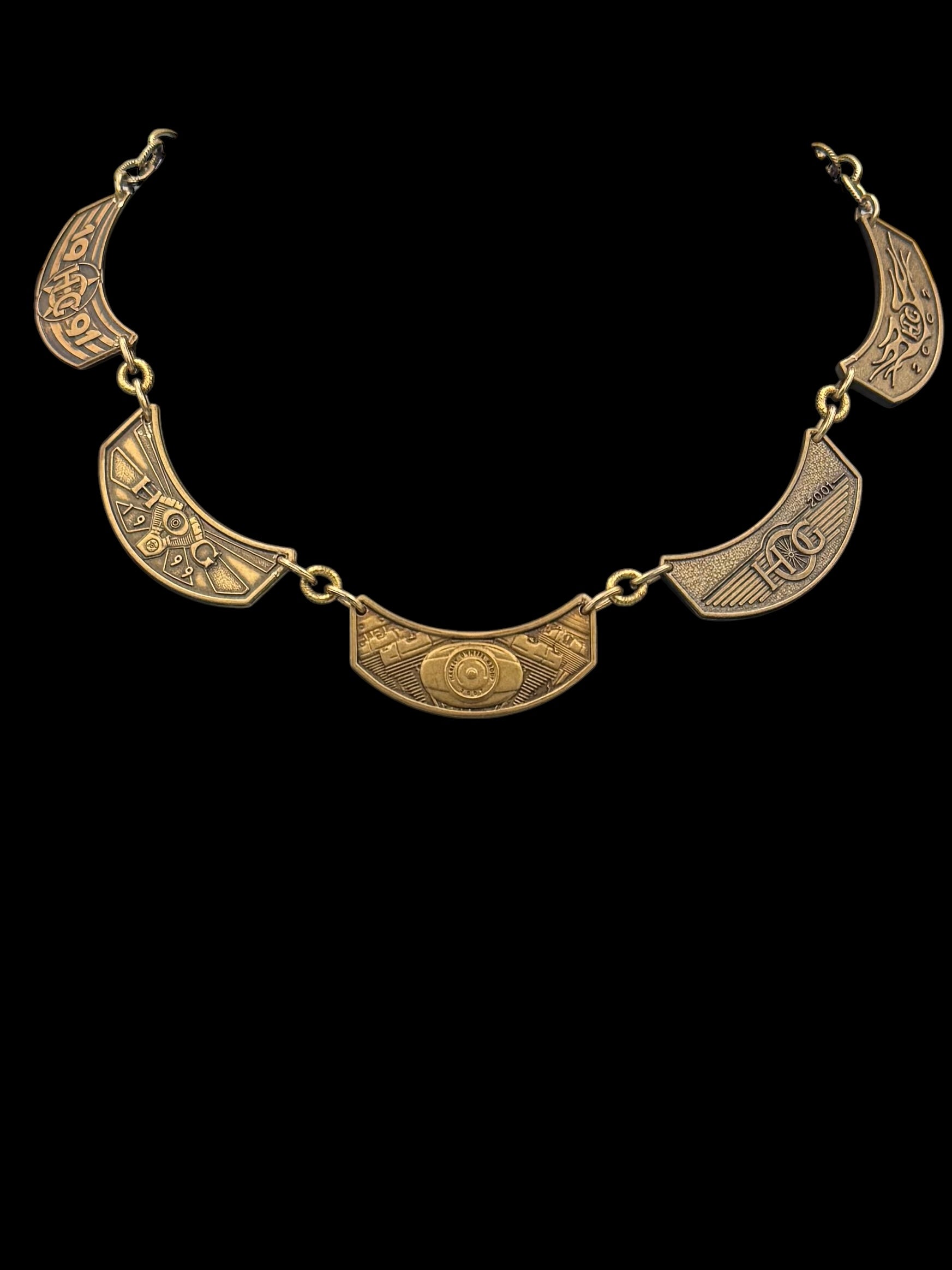 Five Vintage badges to create a custom collar necklace.