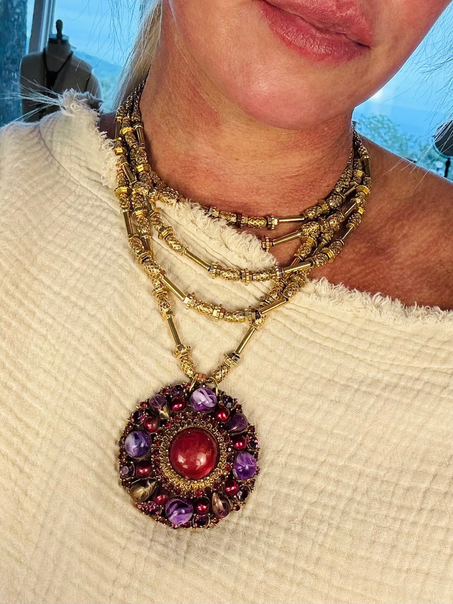Vintage Etruscan style layered necklace.