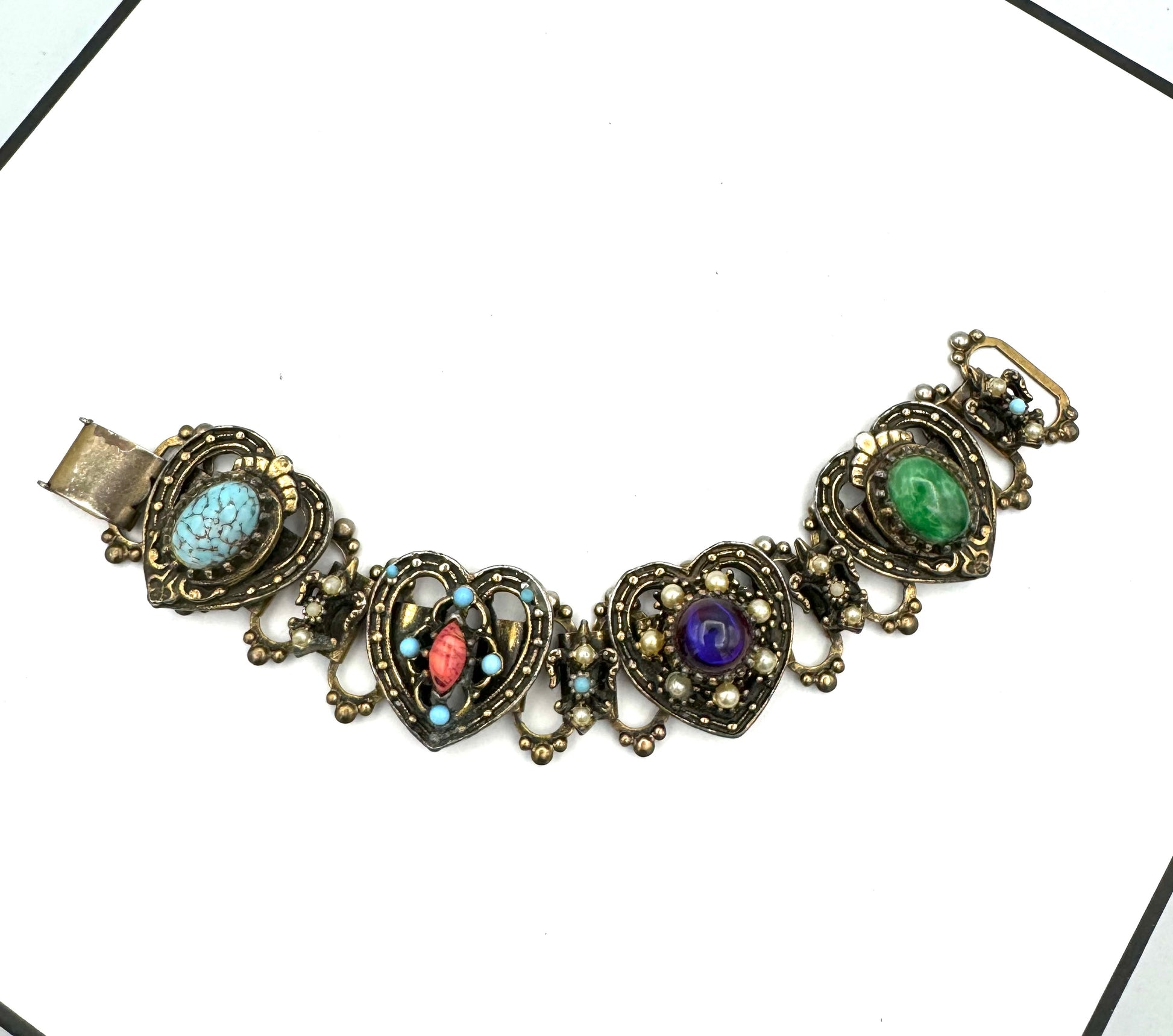 Vintage 1960s bracelet with colorful detail stone. Length is 7”.