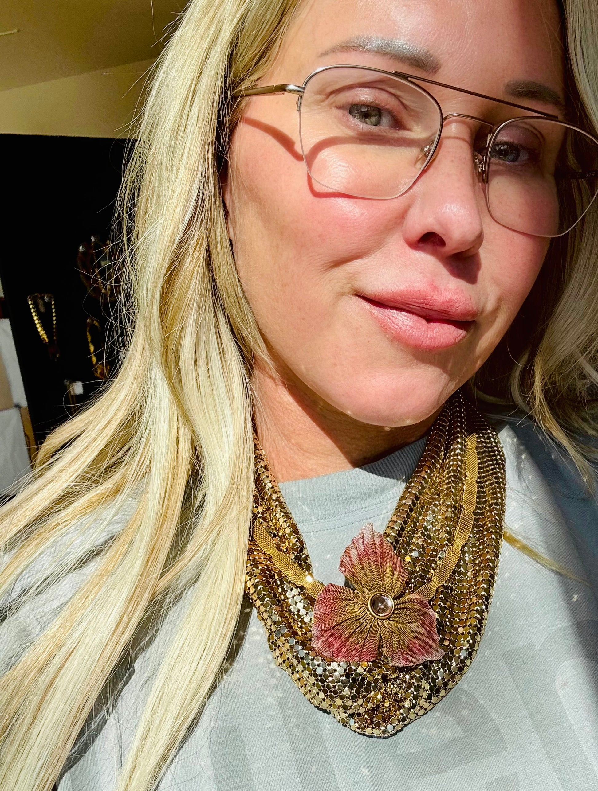 Flower mesh necklace had two clasp for attachment.