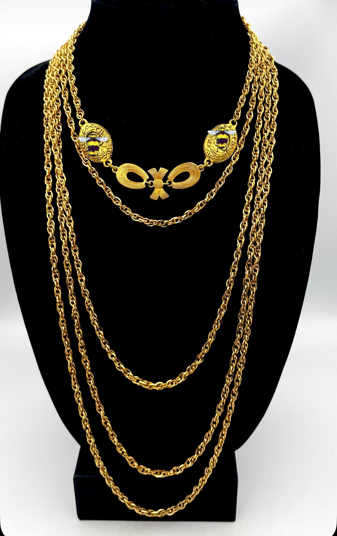 1970’s layered necklace. Unique centerpiece on the shortest chain. I added two designer connector that I hand sourced in Paris, France.
