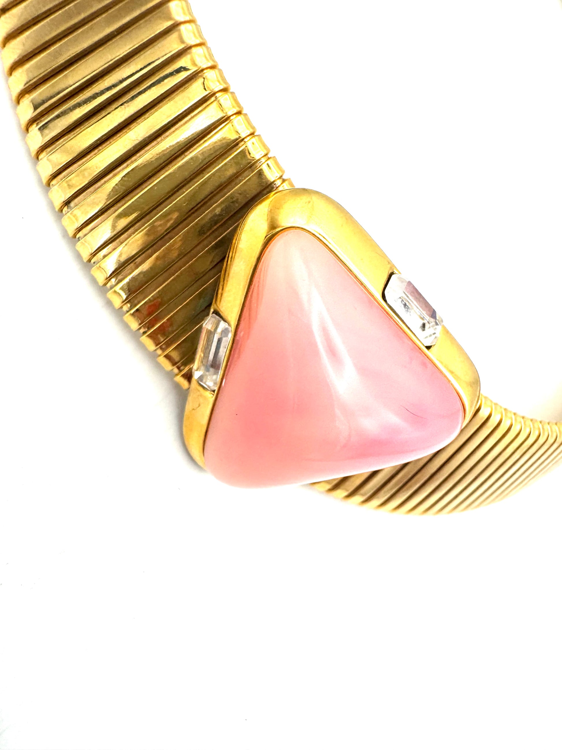 This vintake 1960’s colllar with a pink triangle and rhinestone detail was sourced in California- right at the height of groove and disco.
