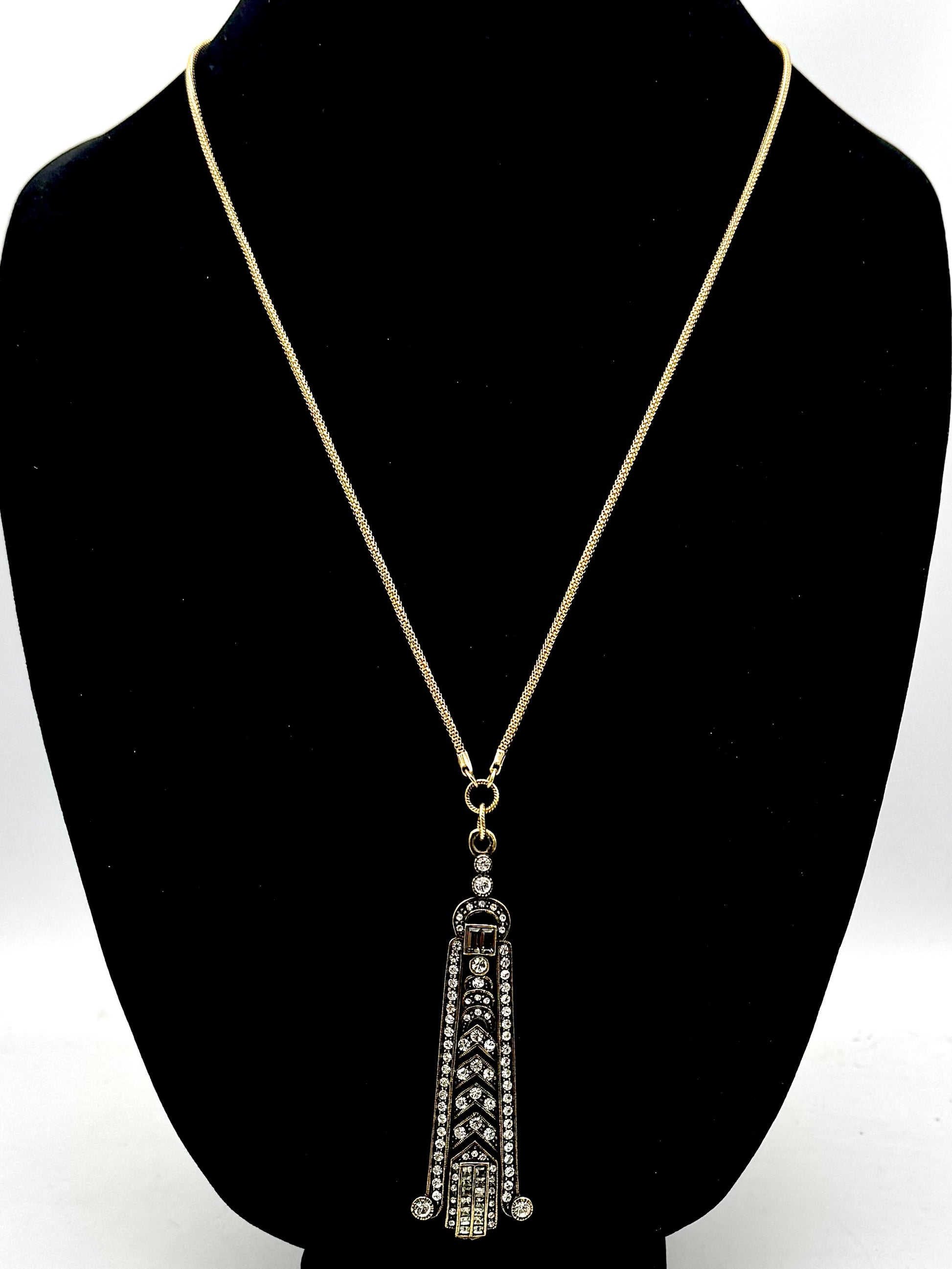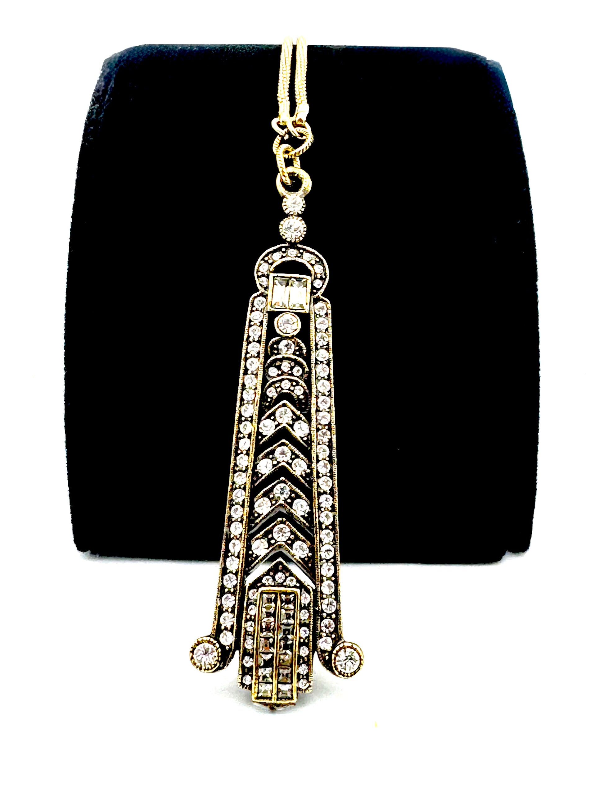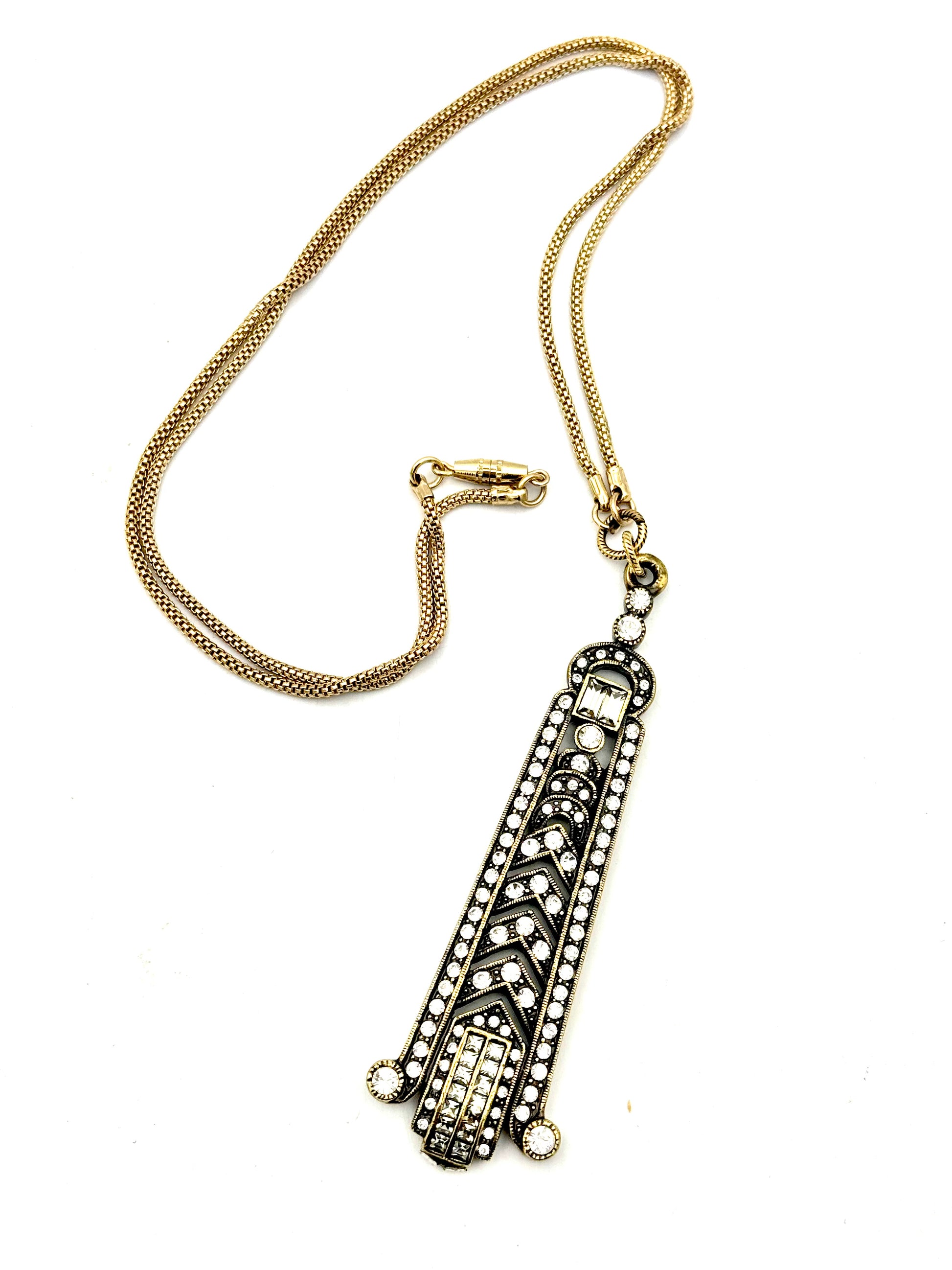 1990s deco inspired (Heidi Daus) pendant. On a 1950s chain that has a twist clasp.