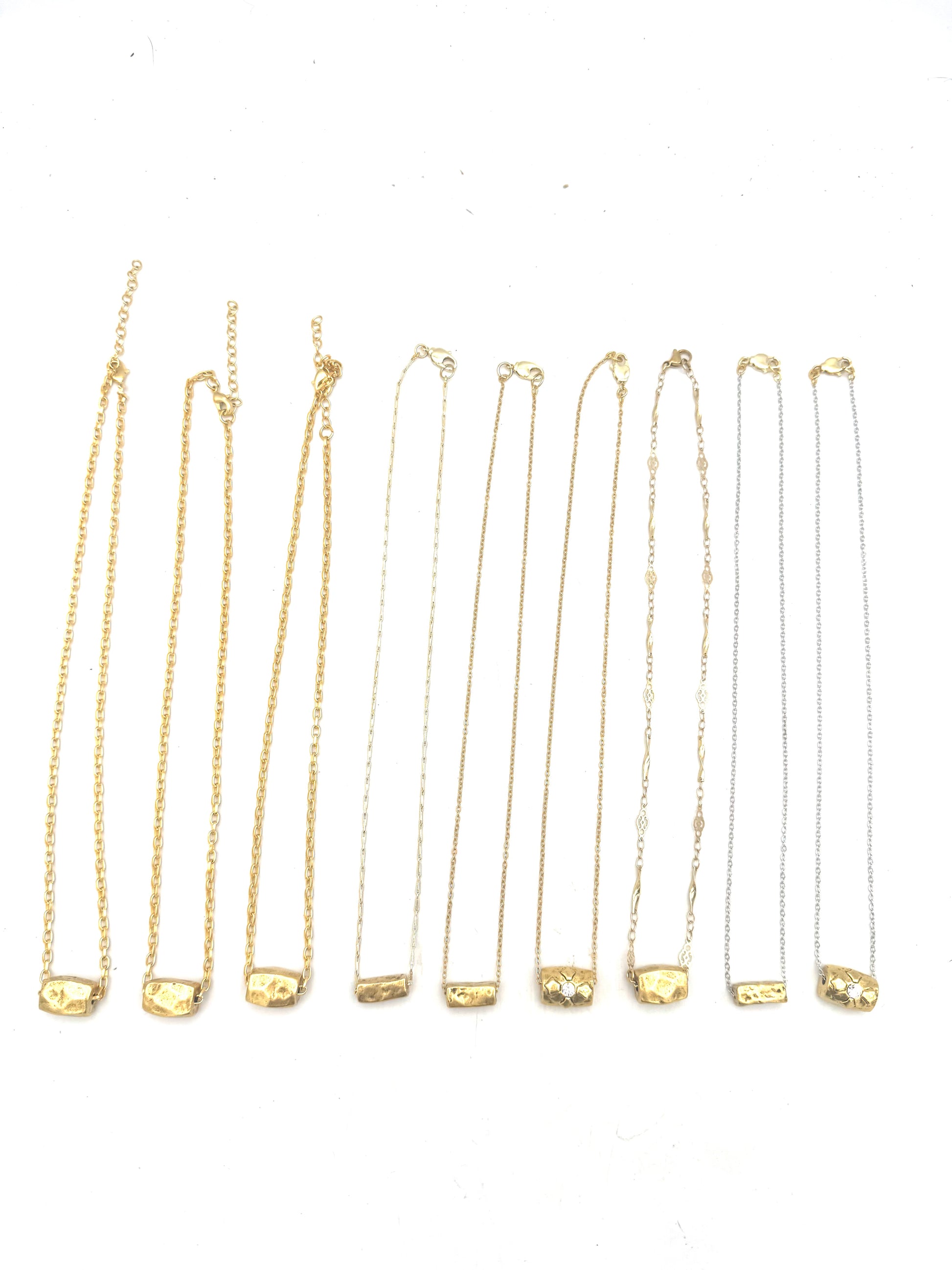 These minimalist bar necklaces can either be worn alone or added next to another piece to create the perfect stacked look.The gold chains are gold filled. Each necklace fits up to 17.5”.