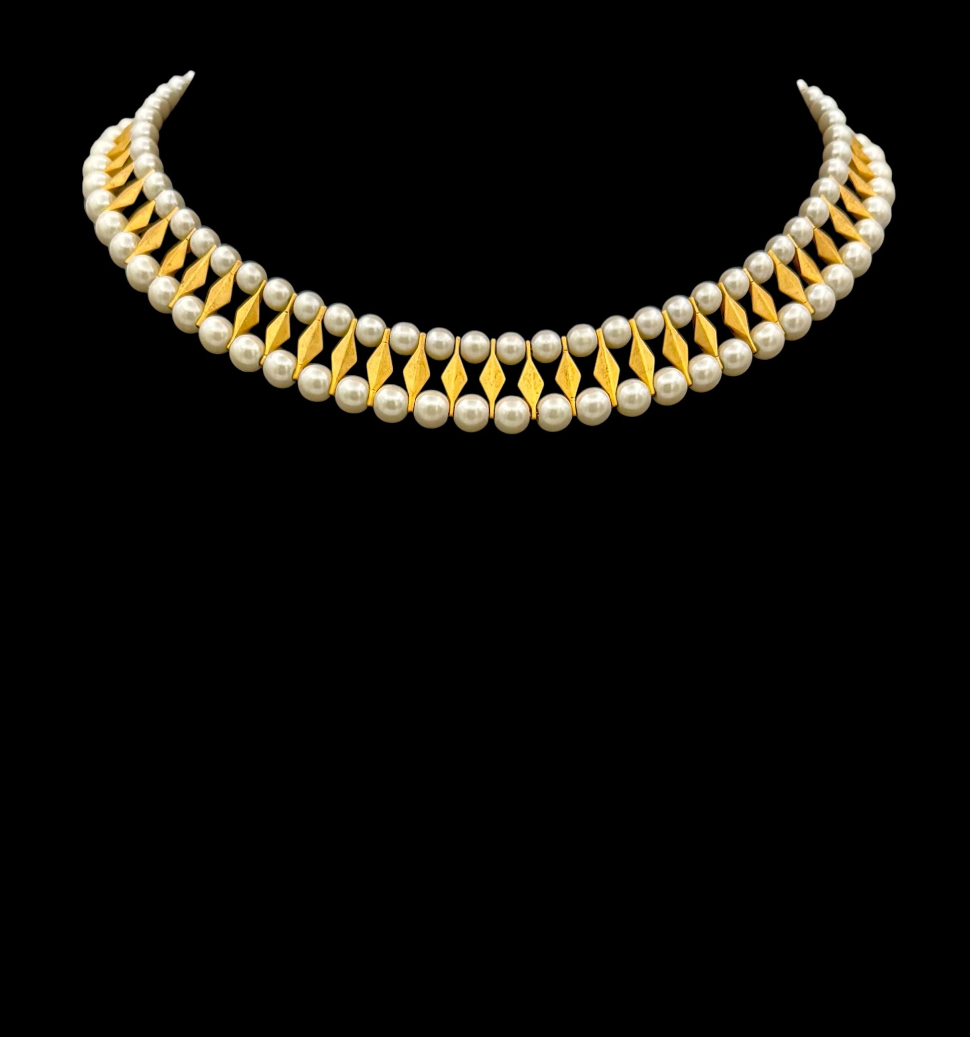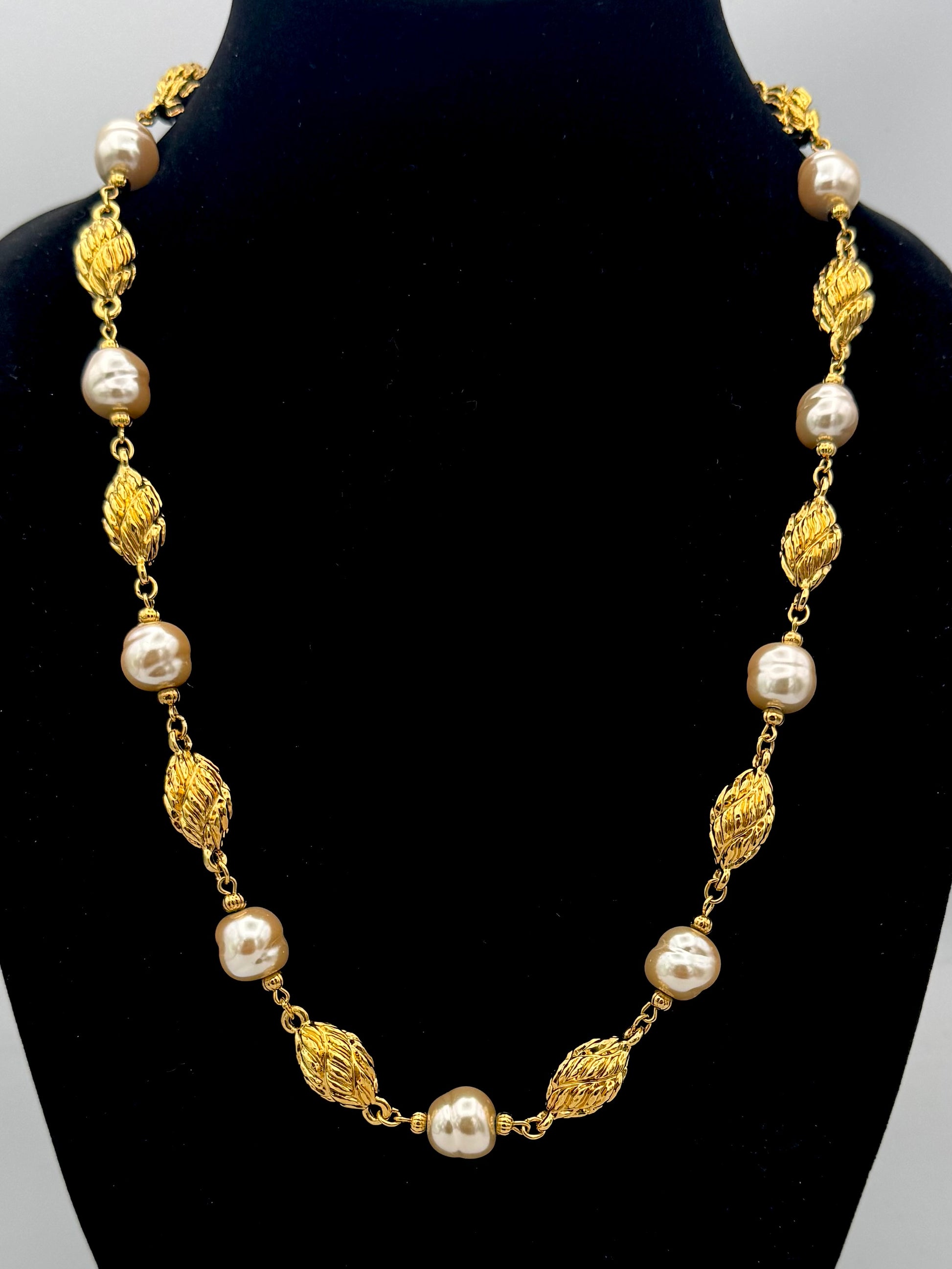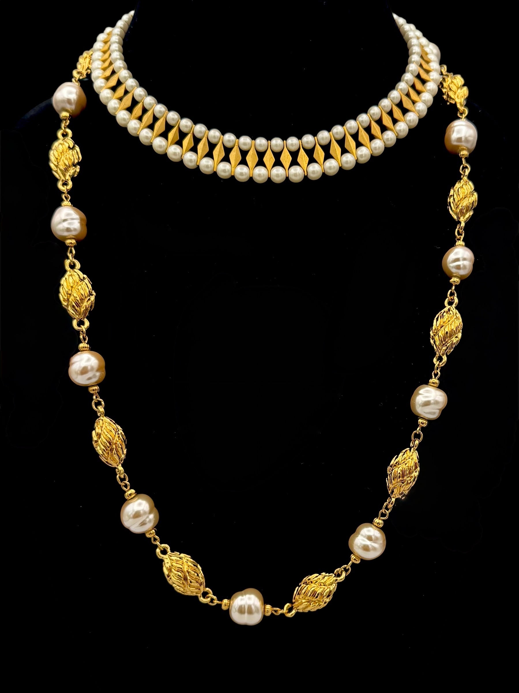 Layered St. John glass pearls and matte gold with a bold lion medallion — versatile, detachable, and statement-making.
