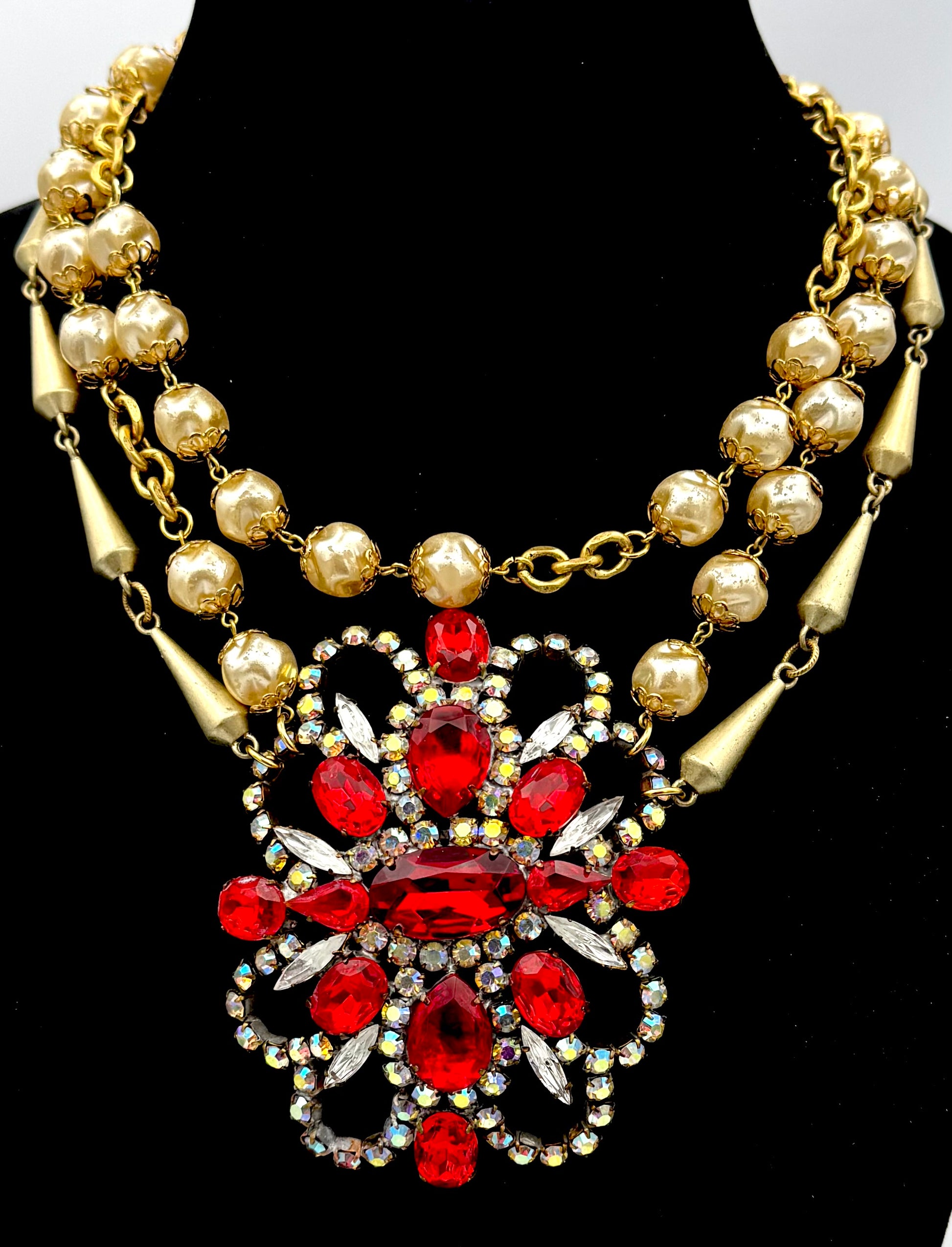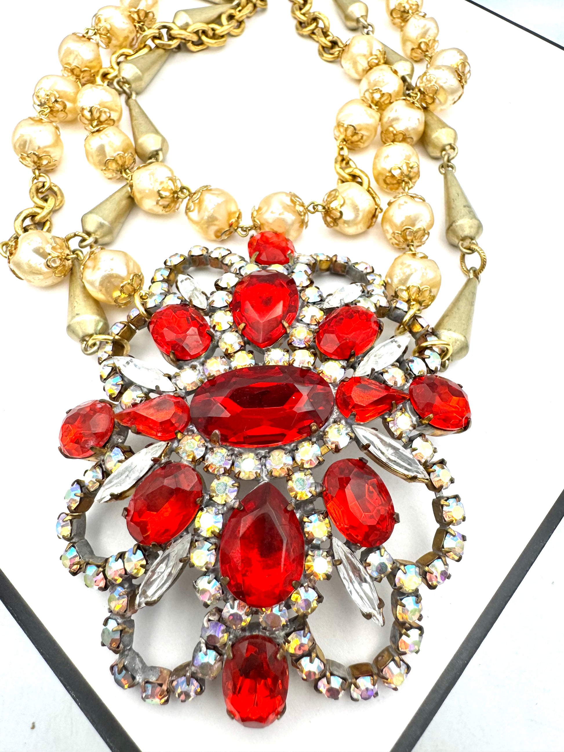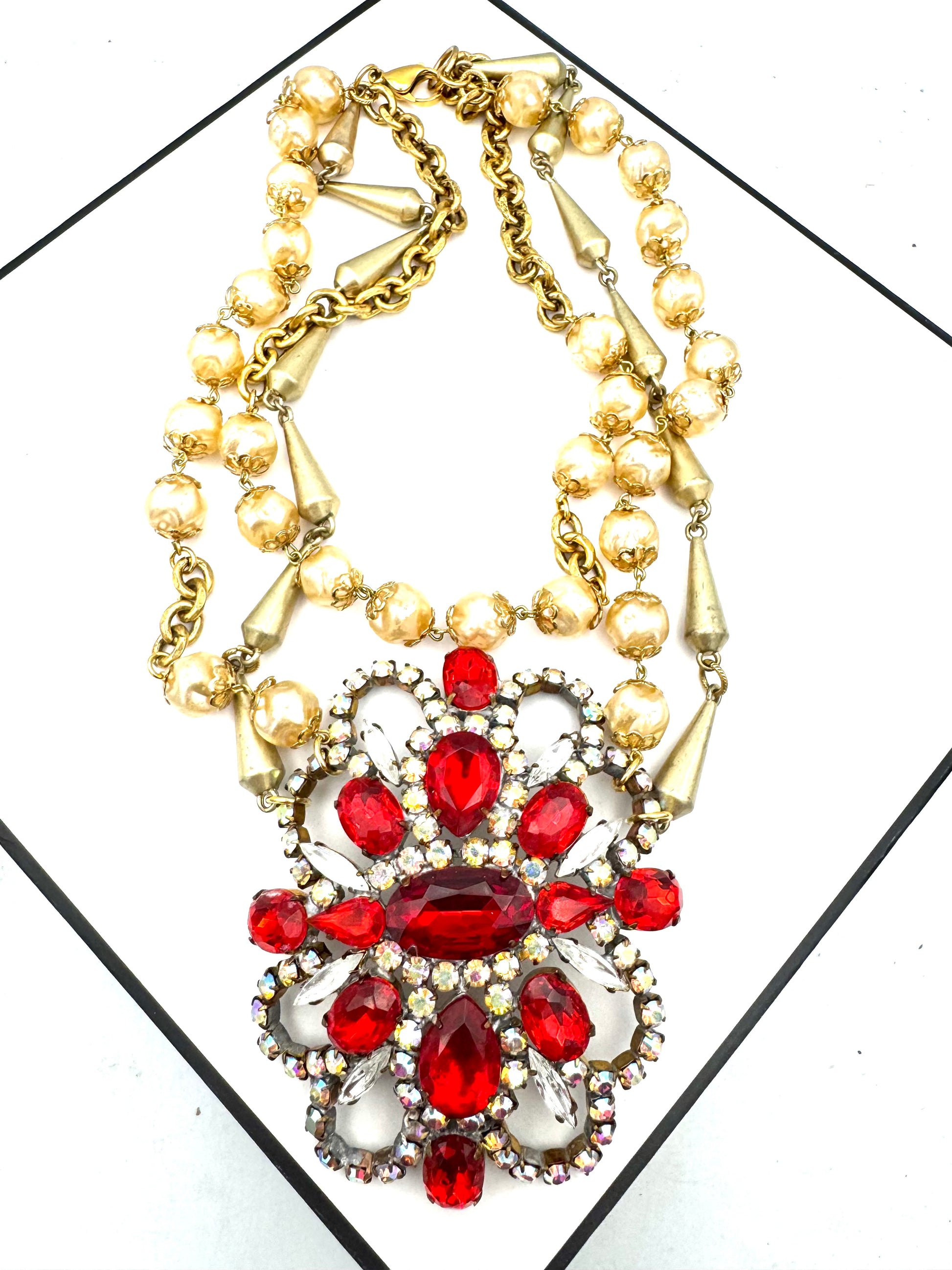 Vintage Czechoslovakian brooch, featuring Czech glass pearls) sourced from a collector from Virginia. I hung this on an antique 17” gold plated chain.
