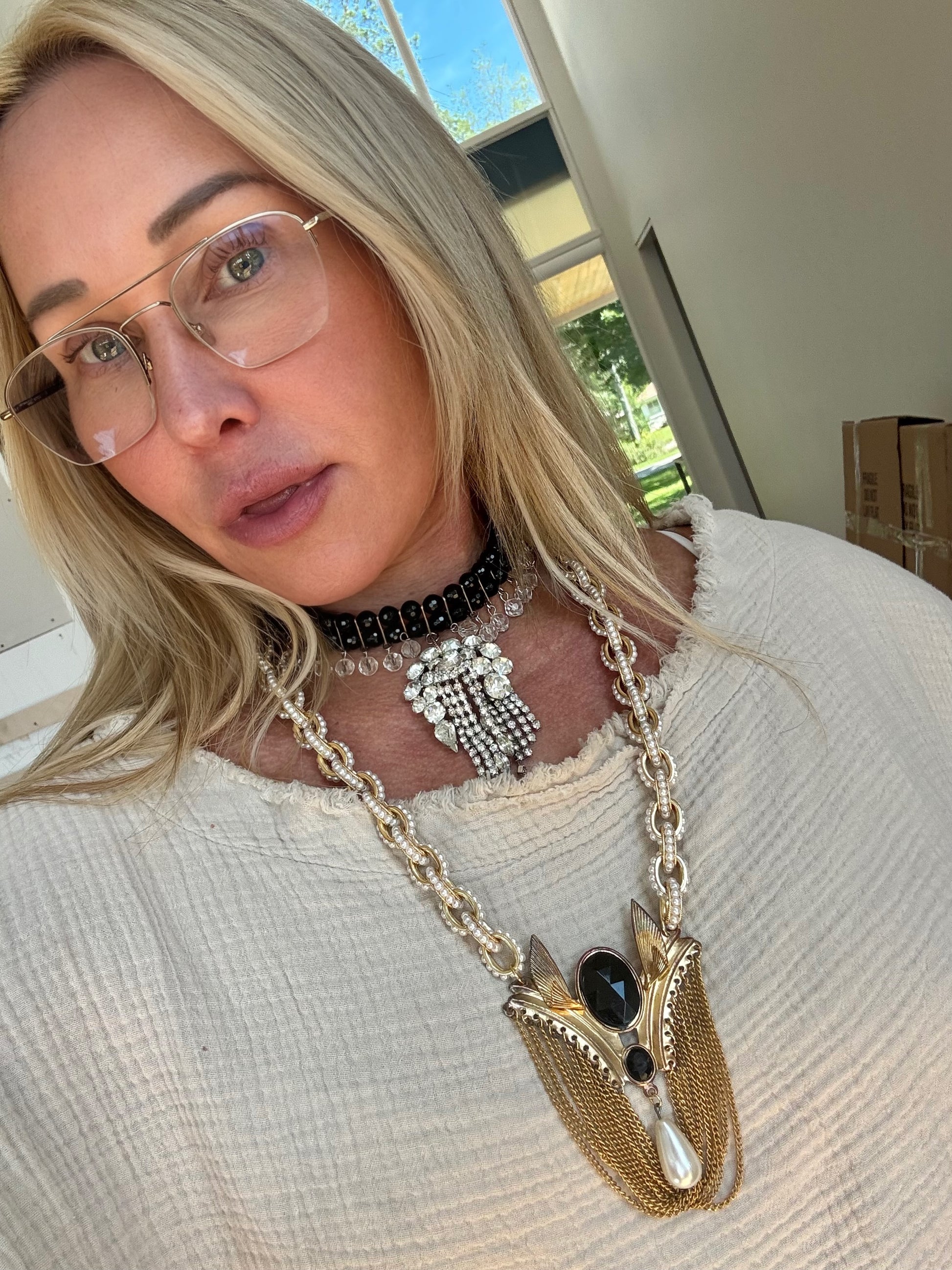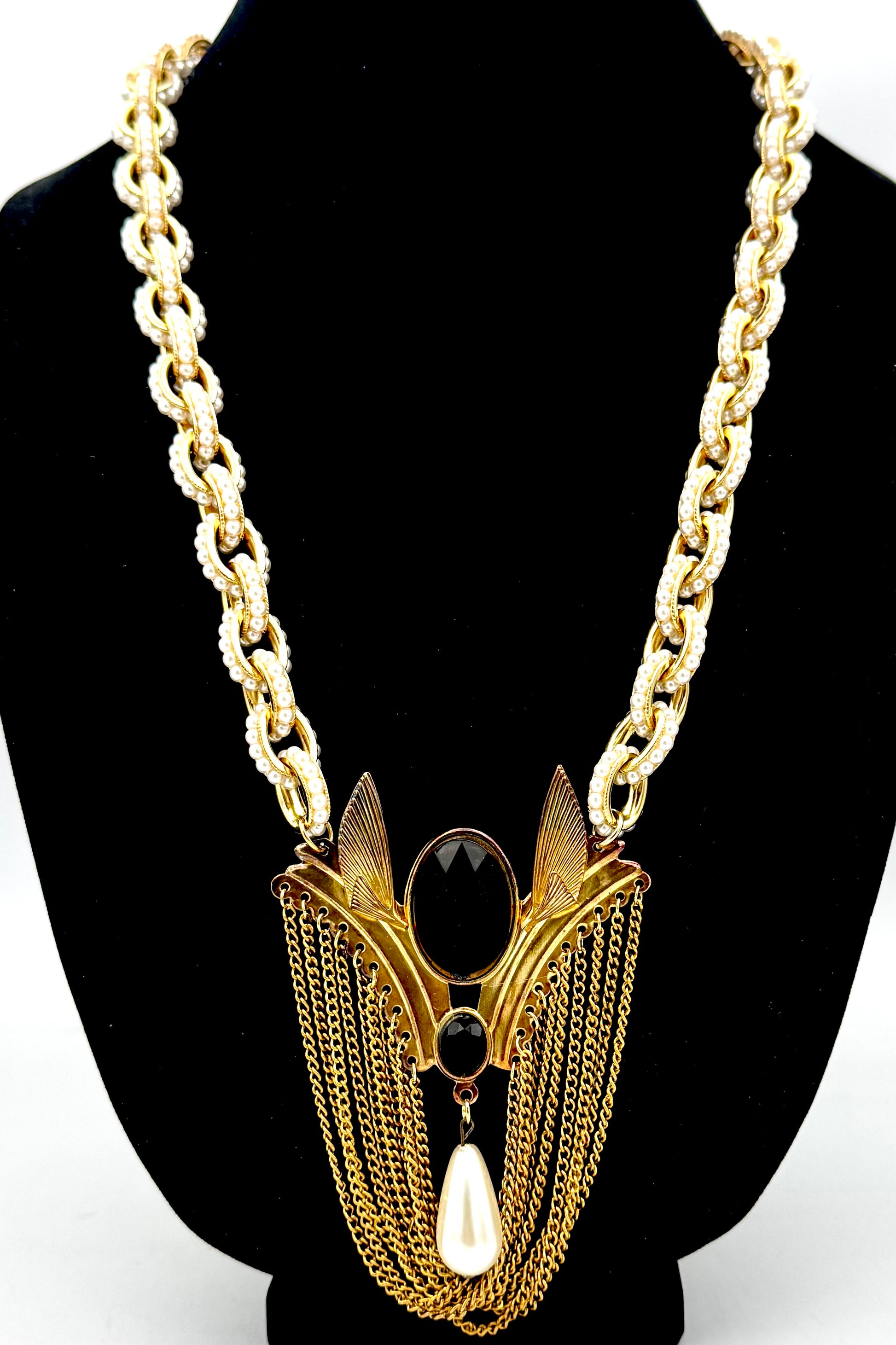 New matte gold with faux pearl detail link chain.